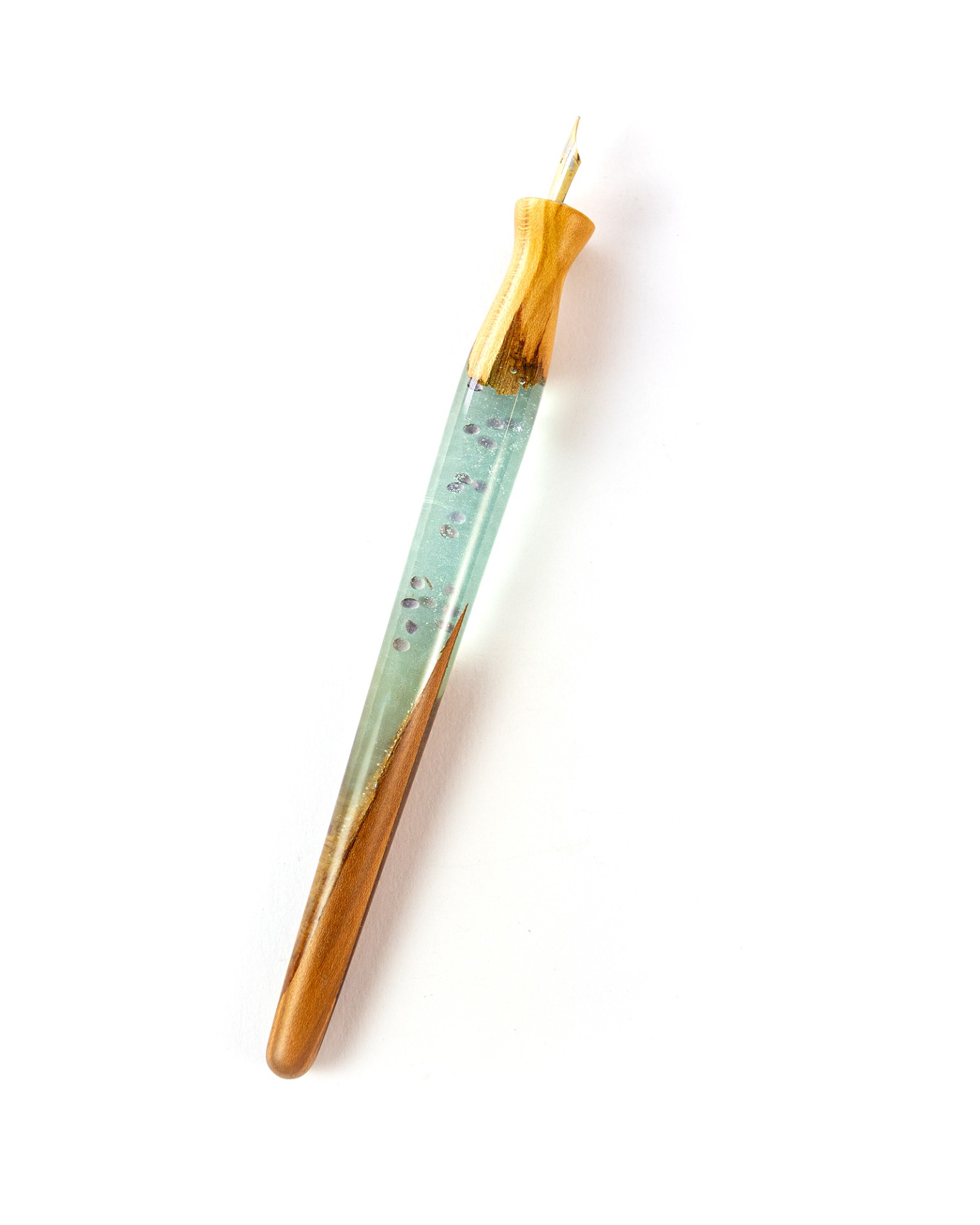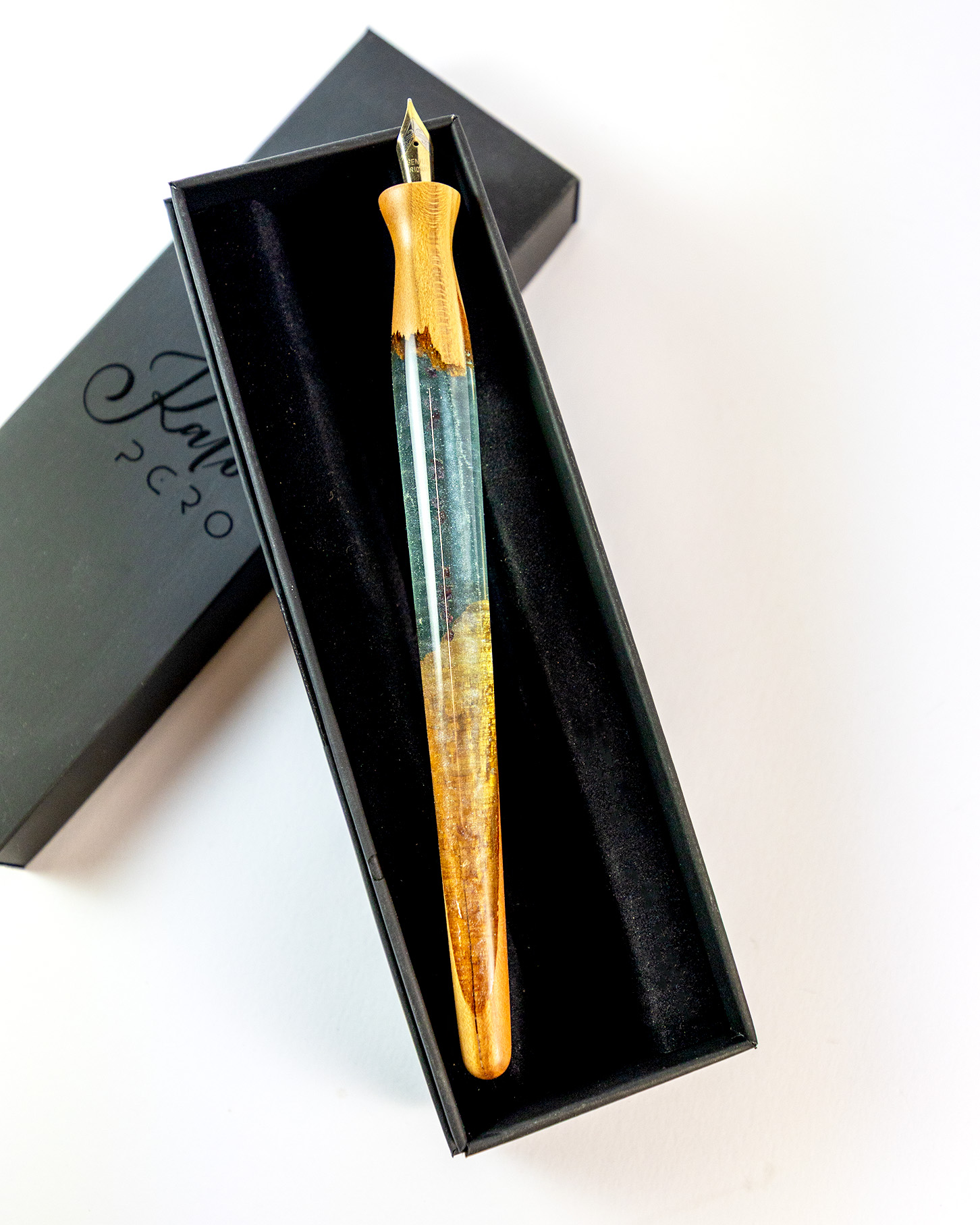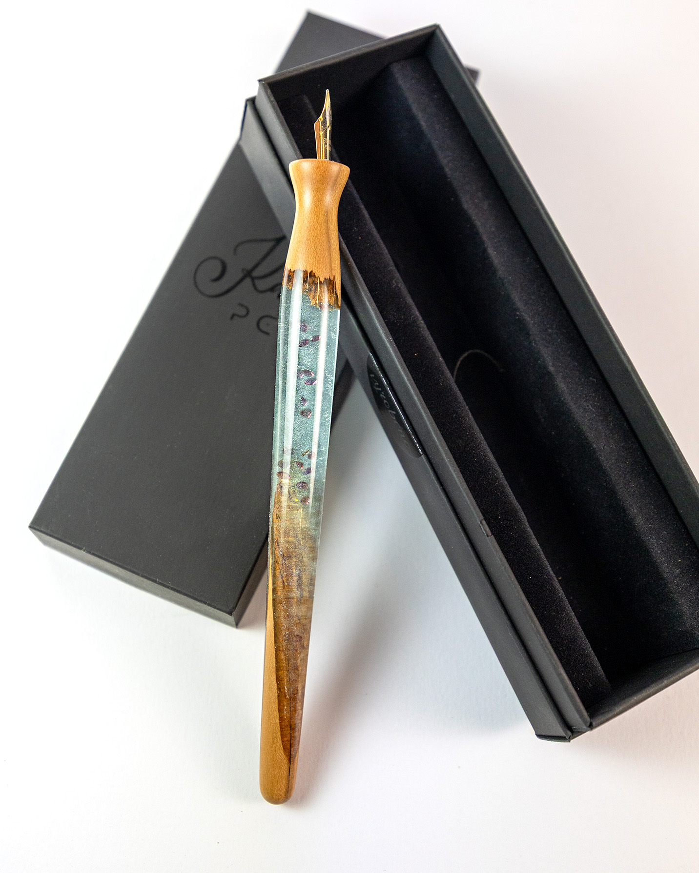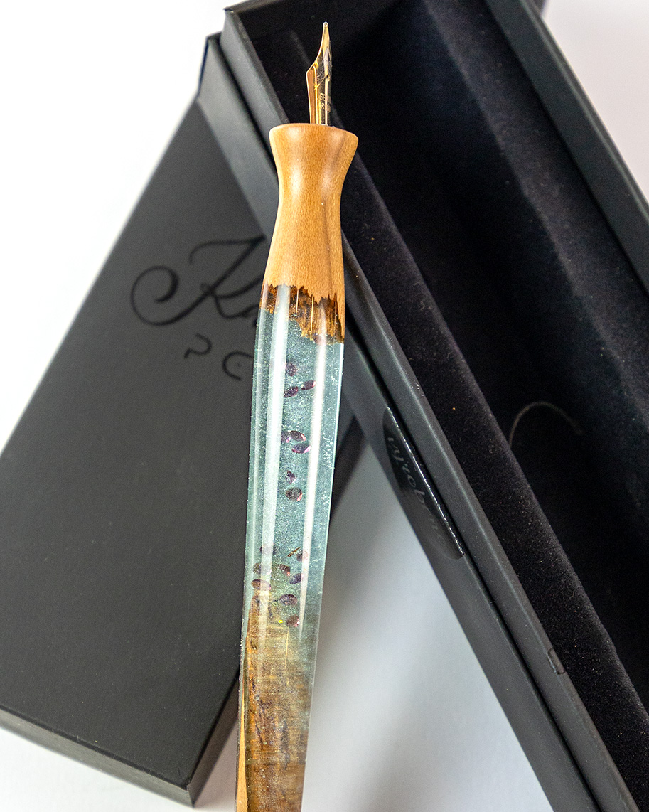 Toto originální, přímé kaligrafické pero z dílny Kalipero propojuje tradiční české materiály s moderním designem. Každý kus je ručně soustružený a naprostý originál – neopakovatelný ve své kresbě i skladbě detailů.